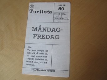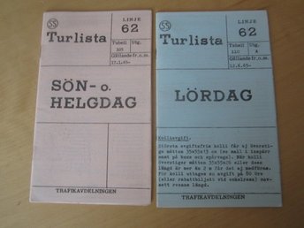 Tidtabell Turlista Linje 62 2st. / 17/1 1965 och 12/6 1965