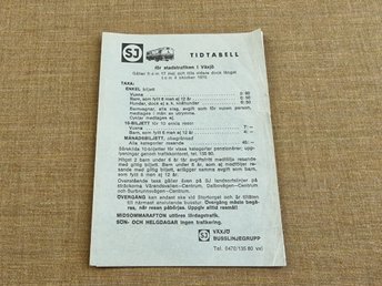 TIDTABELL - SJ BUSSAR 1970 - STADSTRAFIKEN I VÄXJÖ