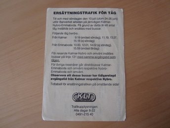 Tidtabell för ersättningstrafik Kalmar-Emmaboda