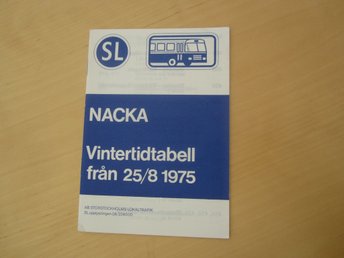 Tidtabell Nacka Vintertidtabell från 25/8 1975 SL Buss