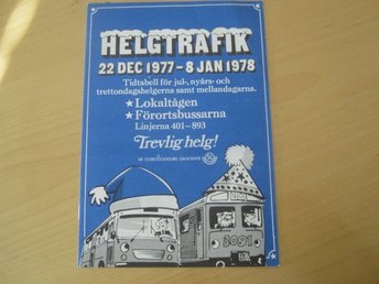 Tidtabell HELGTRAFIK SL 1977-1978