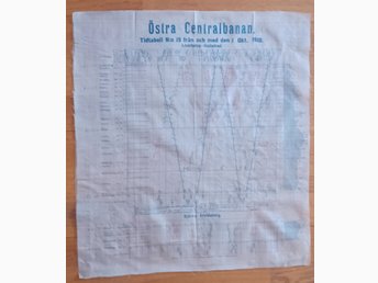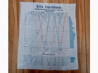 Tidtabell på Sidentyg Östra Stambanan Linköping-Hultsfred 5 Maj 1917 Enl Bild