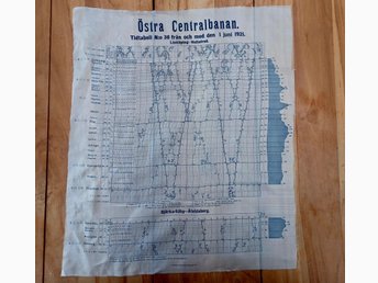 Tidtabell på Sidentyg Östra Stambanan Linköping-Hultsfred 1 Juni 1921 Enl Bild
