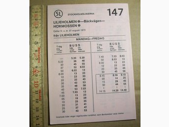 SL Tidtabell Liljeholmen-Hökmossen 1973