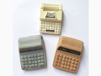 Suddgummi miniräknare och skrivmaskin, retro 80-talet, suddisar, nostalgi