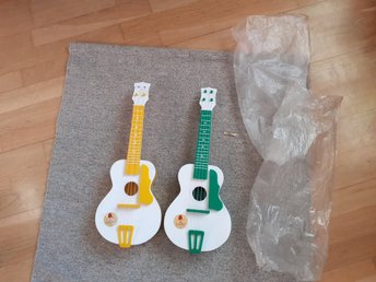 Eurotoys. Luxor Plastic. 2 stycken Leksaks-gitarrer. Limlagade. 1960-70's.