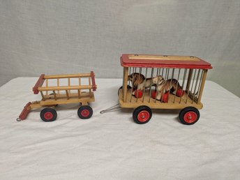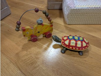 Vintage leksaker: Sköldpadda i plåt och dragleksak i trä