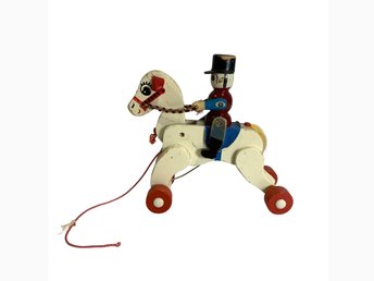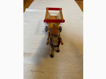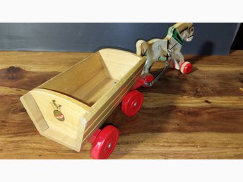 Antik Trähäst med Vagn Leksak