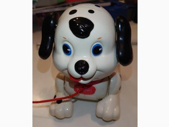 Hund, leksak, Fisher-Price , Retro, Dalmatiner valp dragleksak, Vintage