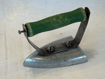 Litet vintage strykjärn med grön handtag