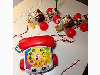 Fisher-Price retro telefon + 2 st Little Snoopy draghundar (1 trä, 1 plast)