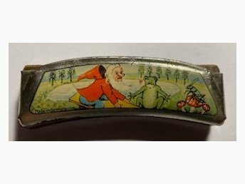 Leksaksmunspel med motiv på tomte , groda och gräshoppa