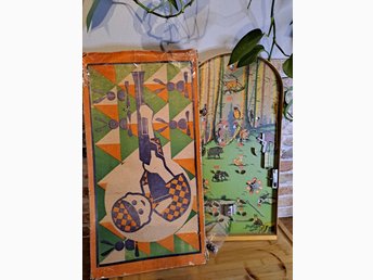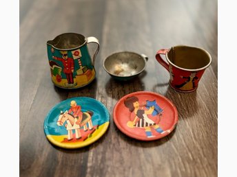 Plåtleksaker 50-/60-tal – retro servisdelar med barnmotiv, samlarobjekt