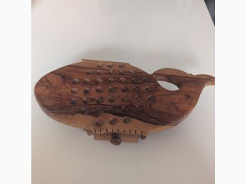 Gammalt retro spel i trä. Fiskformad. Antikt