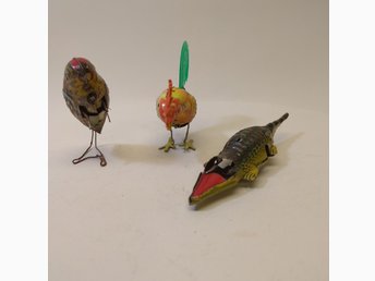 Vintage Plåtleksaker - Fågel, Tupp och Krokodil