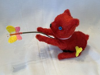 Uppvridbar katt med fjäril – retro leksak från 1960–1970-tal