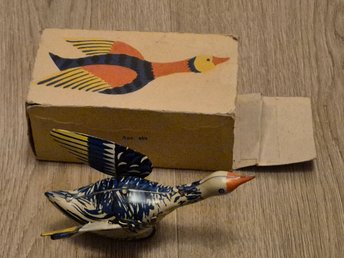 Komplett Vintage Plåtleksak fågel med originalkartong & Nyckel, USSR, Apt. 459