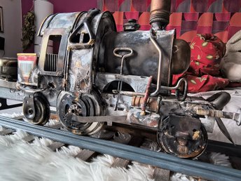 Antik skulptur "skrotlok" - handgjort lokomotiv i metall på