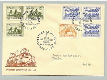 Sverige. FDC med vinjett Sveriges Järnvägar 100 år 1956
