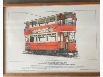 Fyra inramade litografier av gamla spårvagnar, begränsad upplaga