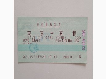 (2014) Japansk JR Shinkansen tågbiljett, Tokyo - Kyoto rutt
