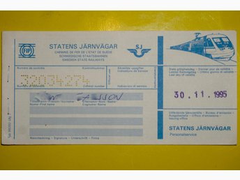 SJ PERSONALBILJETT FRI BILJETT STATENS JÄRNVÄGAR BELGIEN 90 TALET NEDERLÄNDERNA