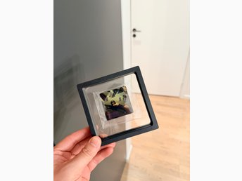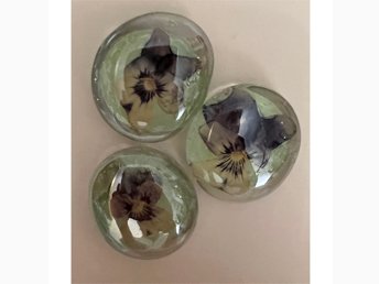 3 st kylskåpsmagneter (torkade blommor violer lila turkos) 3 cm i D