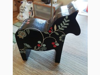 Dalahäst svart med blomstermönster