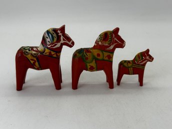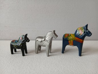3 st miniatyrer av dalahästar Dalahästar i olika storlekar och färger