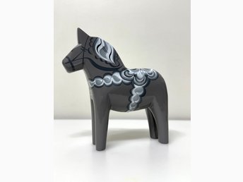 Dalahäst 2021 - Grannas A. Olssons Hemslöjd AB - grå vit - 17CM - Sweden Nusnäs