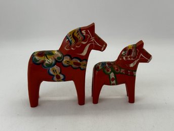 Två Dalahästar i trä