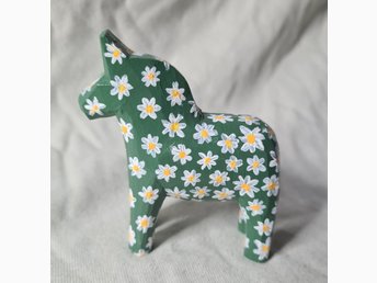 Dalahäst grön med blommor