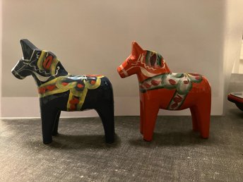 Två Dalahästar - Äkta Dalaslöjd - G.A Olsson