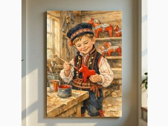 Hård tavla "Pojke målar dalahäst" Dalarna, allmoge