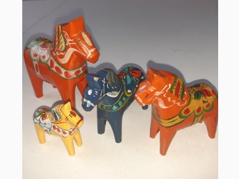 Dalahäst, 4 stycken, trä, handmålad