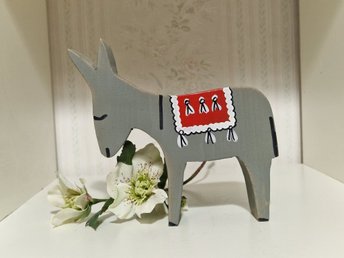 Handmålad/ åsna/ i trä / vintage / samlar figurin/ Nostalgi/ signerad/ Dalahäs