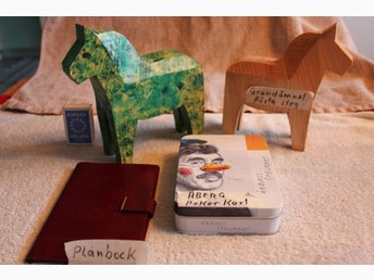 2 dalarhästa och Diverse samling av föremål.BRA JULKLAPP