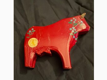 Dalahäst tjur röd med blommor