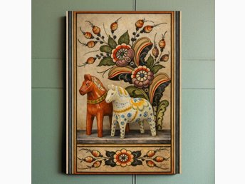 Hård tavla "Kurbits med dalahästar"