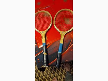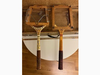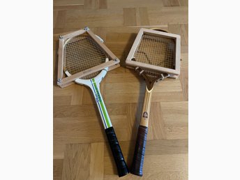 Två Äldre Tennisracketar med Skydd I trä Gemla Fabrikers AB Diö Wood Racquet