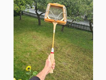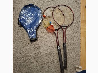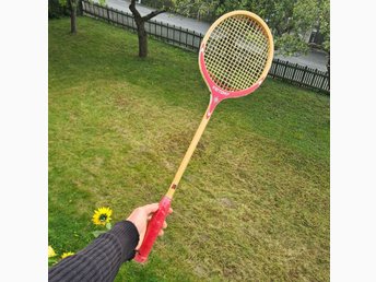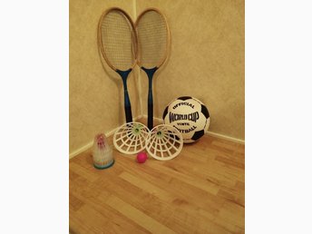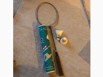 Badmintonracket med fjäderbollar 70 tal retro samlaresaker samlarsaker