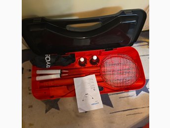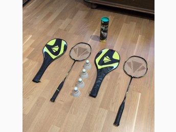Sportpaket med badmintonracketar, boll, och bollfångare