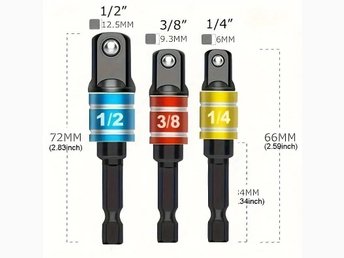Sänkt pris - 3-delars Adapterset för Borrmaskiner, 1/4", 3/8", 1/2"