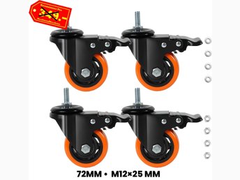 4st NYA Kraftiga hjul med broms för möbler • 100mm • M12×25 mm • Ord.pris 379kr