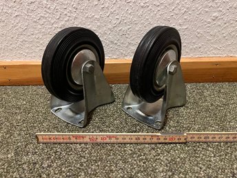 2st Länkhjul,Rackhjul,Transporthjul,Hjul Ø125 m GummibO fästplattor Nya/Oanvända