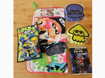 Splatoon handuk, tvättsvamp, pulver till badvatten och godispåse, nintend