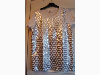 Seed Heritage vit, paljettmönstrad topp T-shirt - Storlek M