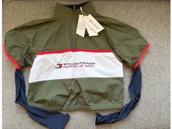 Tommy Sport olivgrön, vit, röd, marinblå träningsjacka, storlek XS