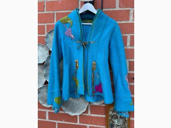 Åsa Örterström handgjord turkos jacka, stl 34-36.