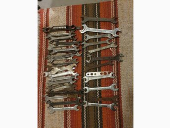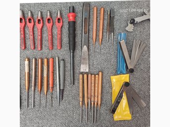 Diverse äldre verktyg filar trä såg Milford väggkrok